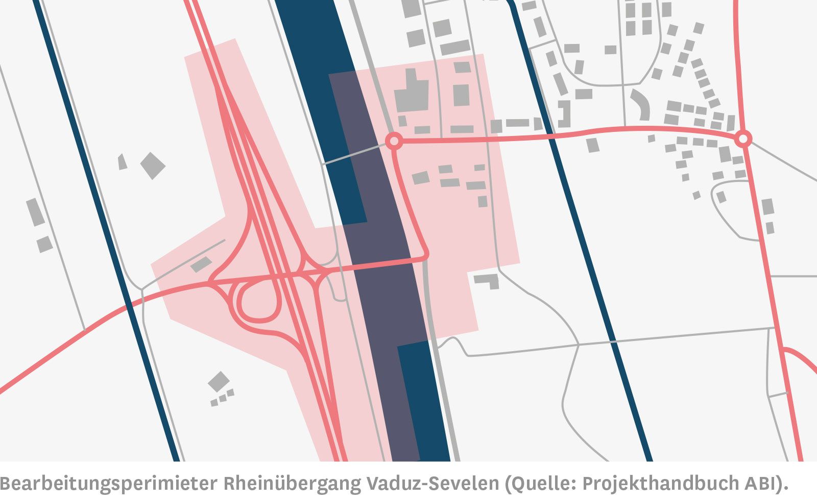 Es werden Lösungsansätze im Bereich des öffentlichen Verkehrs (ÖV), des motorisierten Individualverkehrs (MIV) und des Langsamverkehrs (LV) verfolgt. So wird unter anderem geprüft, ob mit zusätzlichen Bypässen, einer rückwärtigen Erschliessung eines Teils des Benderer Industriegebietes oder mit einer gänzlich neuen Verkehrsanlage mit einer anderen Organisation eine Entlastung erreicht werden kann. Die heutigen Rhein- und Vorlandbrücken müssen aus statischen Gründen umfassend ertüchtigt werden. Aufgrund des Tragwerks wird eine weitere Verbreiterung auch in Zukunft nicht möglich sein. Deshalb ist ein Ersatz der Strassenbrücke unumgänglich. Der Zeitpunkt eines Neubaus ist mit der Optimierung des Verkehrsknotens Gamprin/Bendern und den Massnahmen auf der Schweizer Seite abzustimmen. Wird vorzeitig eine separate Langsamverkehrsbrücke realisiert, könnte für die Zeit bis zum Ersatz der Strassenbrücke anstelle der freiwerdenden Radstreifen eine zusätzliche Fahrbahn für den MIV oder ÖV angeboten werden. Zusätzlich zur Langsamverkehrsbrücke sollen auch die Anschlüsse des Radwegnetzes auf beiden Seiten der Grenze optimiert werden, um die Verkehrsströme zu entflechten.